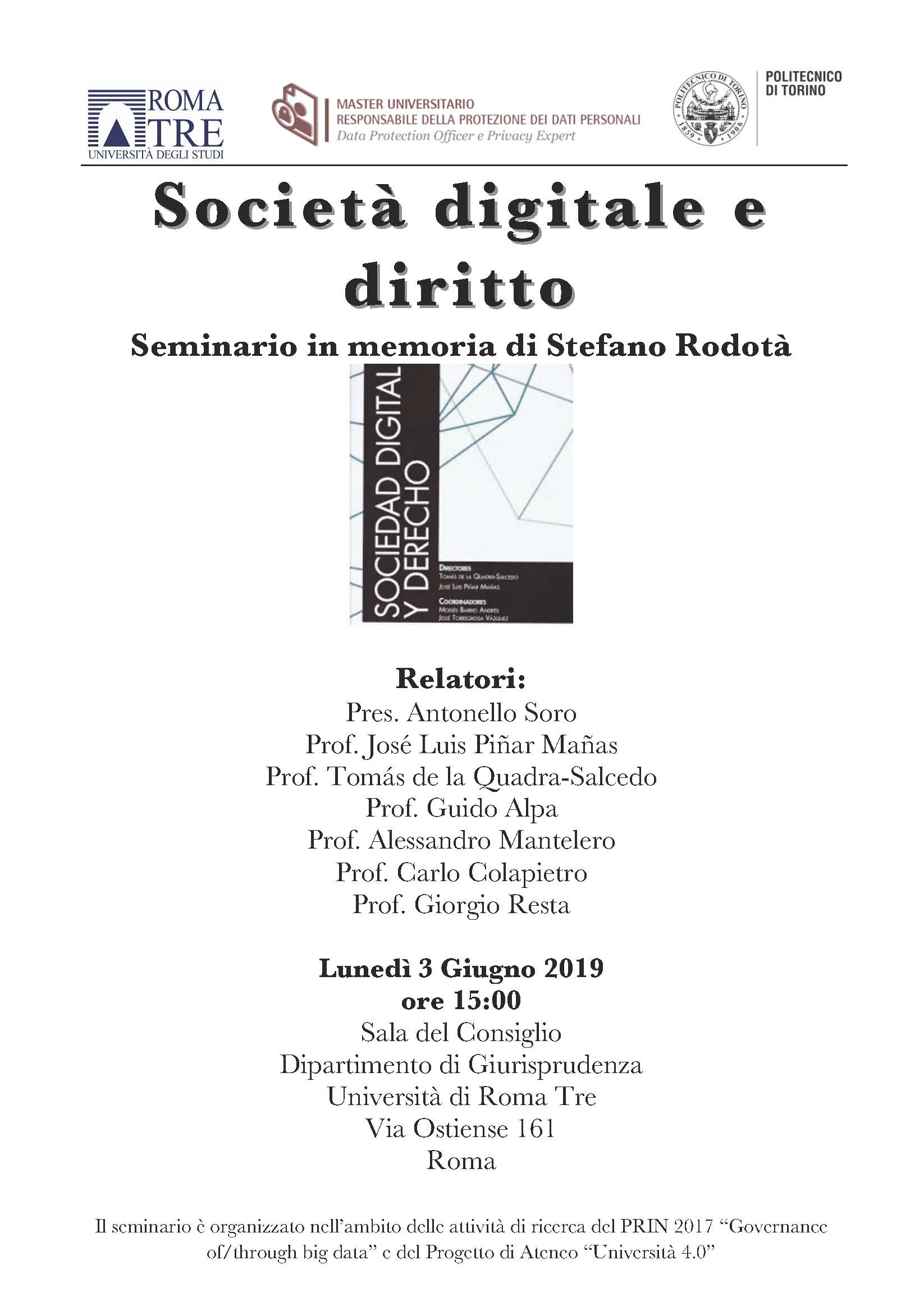 Società digitale e diritto. Roma, 3 giugno 2019