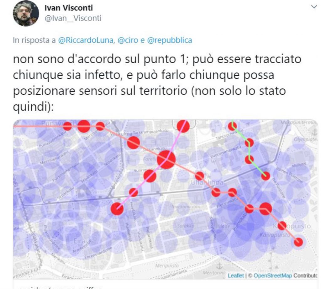 Key4biz. Lei in questo tweet sostiene che: “può essere tracciato chiunque sia infetto, e può farlo chiunque possa posizionare sensori sul territorio (non solo lo stato quindi)”.Perché? Cita anche questo studio, quest’ultimo cosa mette in evidenza?